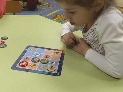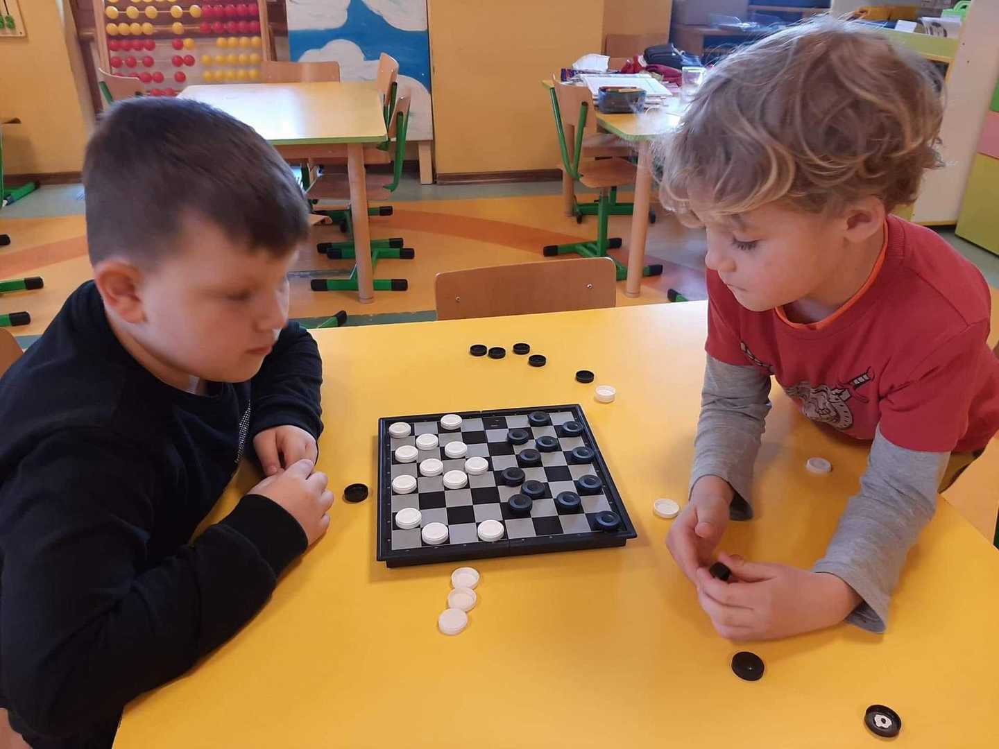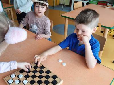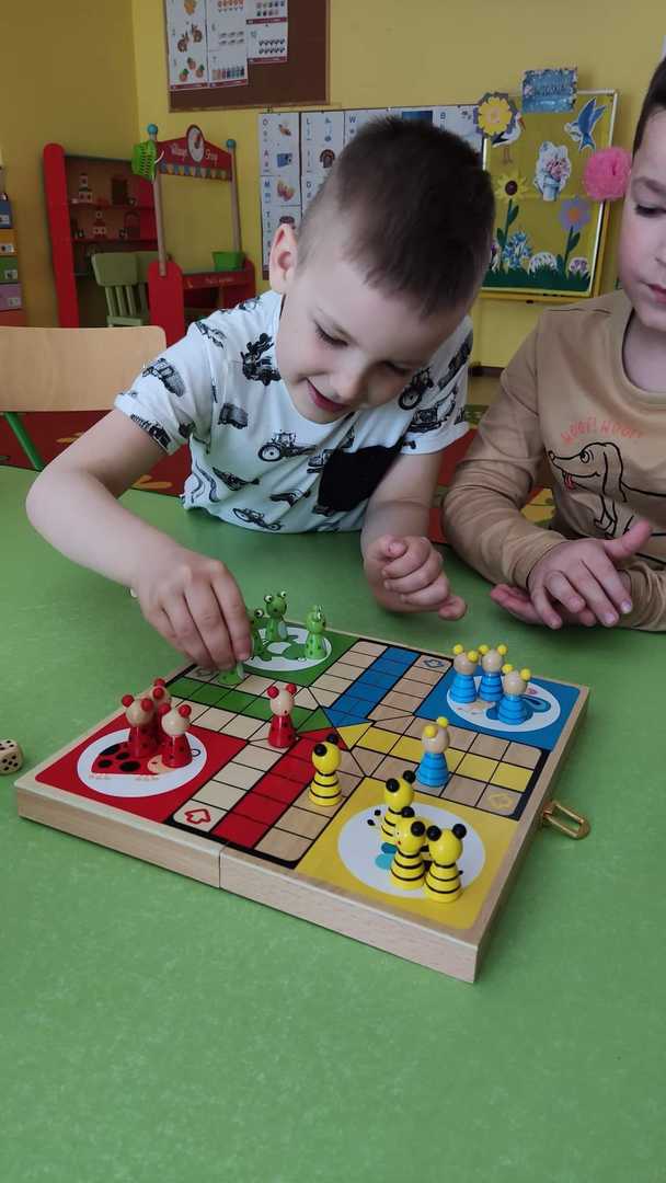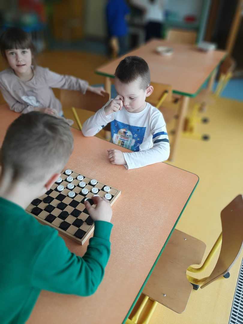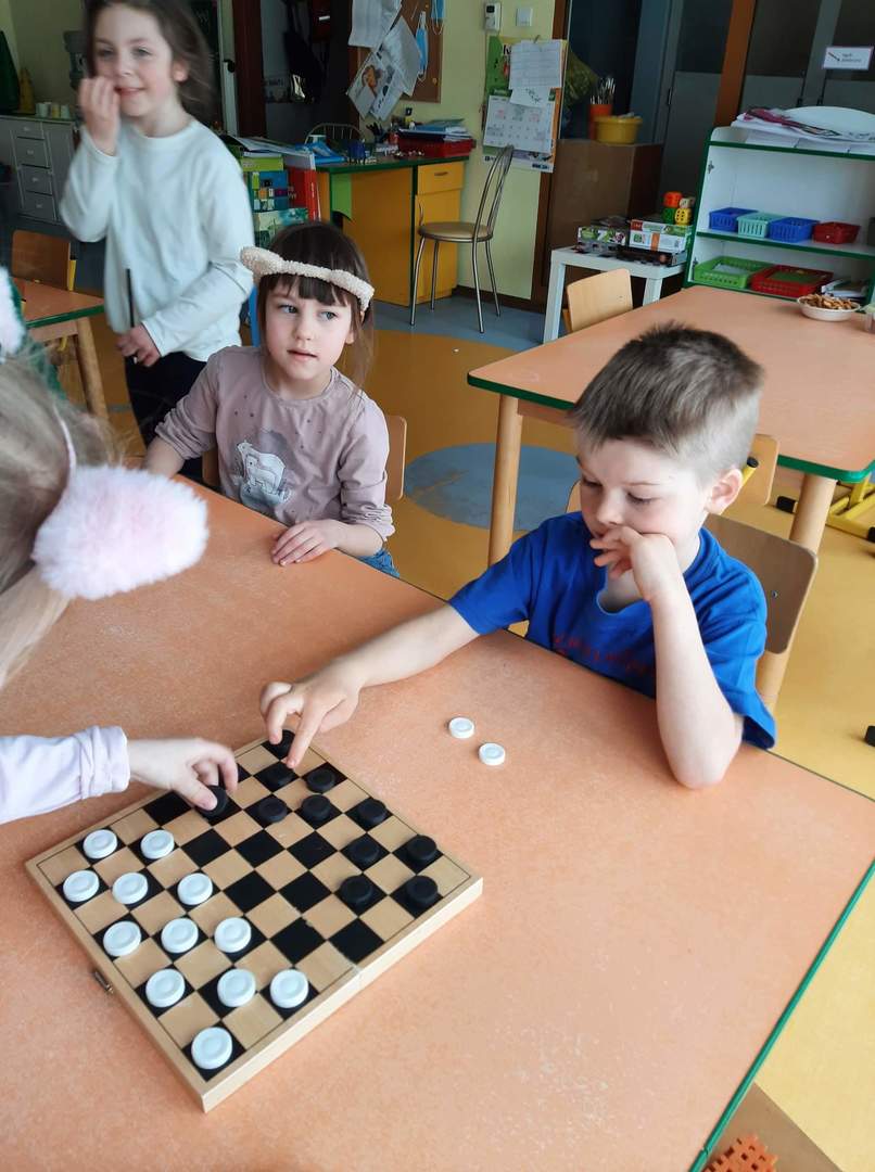 Z graniem ruszyliśmy od marca w każdej grupie wiekowej. Dzieci doskonalą umiejętności logicznego myślenia, cierpliwość, odporność na stres oraz radzenie sobie z przegraną podczas grania w popularne gry m.in.: warcaby, chińczyk, kółko i krzyżyk, domino, tetris, sudoku itd.