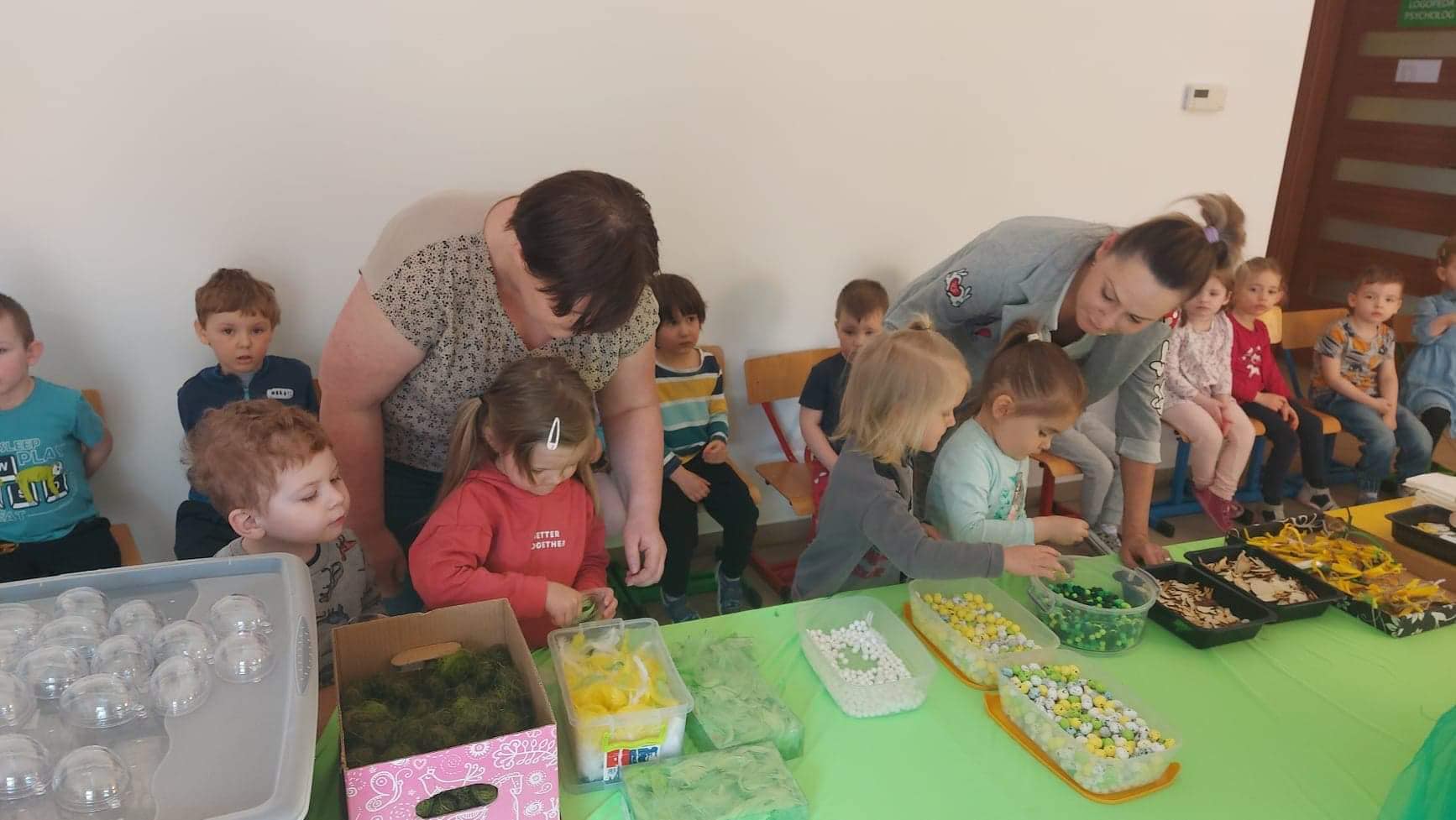 Przez ca艂y tydzie艅 nasze zdolne przedszkolaki przygotowywa艂y si臋 do 艢wi膮t Wielkanocnych. Dzieci sia艂y rze偶uch臋, tworzy艂y przepi臋kne kartki 艣wi膮teczne, a we wtorek odby艂y si臋 warsztaty podczas których dzieci wykona艂y prze艣liczne wielkanocne dekoracje. A oto kilka pami膮tkowych zdj臋膰: