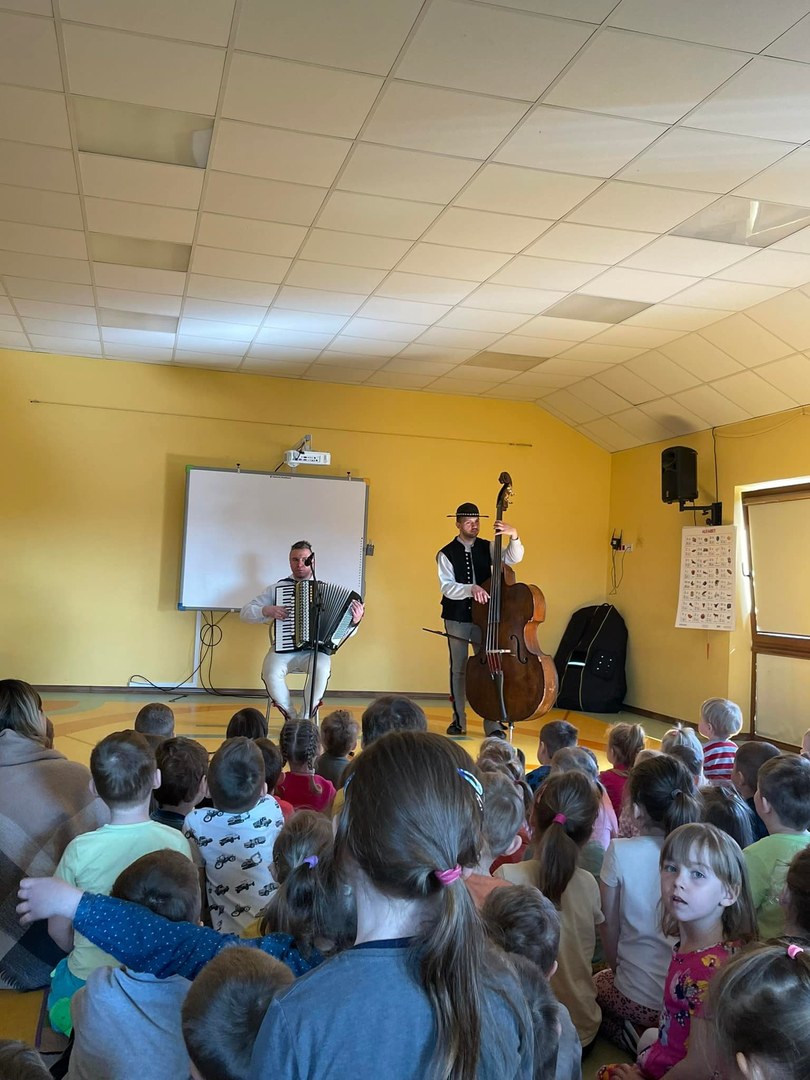 Naszych kochanych przedszkolaków odwiedziła Folk Kapela "Góralska Hora". Podczas koncertu o charakterze góralskim, artyści zaprezentowali kulturę, stroje oraz unikatowe instrumenty góralskie między innymi róg pasterski, skrzypce, kontrabas, akordeon. Górale zagrali i zaśpiewali najbardziej popularne góralskie melodie i piosenki. Skoczna, góralska muzyka tak się spodobała, że zaczęliśmy tańczyć, śpiewać i klaskać w rytm muzyki. Muzycy swoim śpiewem i radosnym usposobieniem wprowadzili nas w pozytywny nastrój. Dziękujemy za odwiedziny i pikne granie HEJ!!!