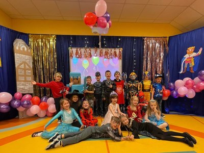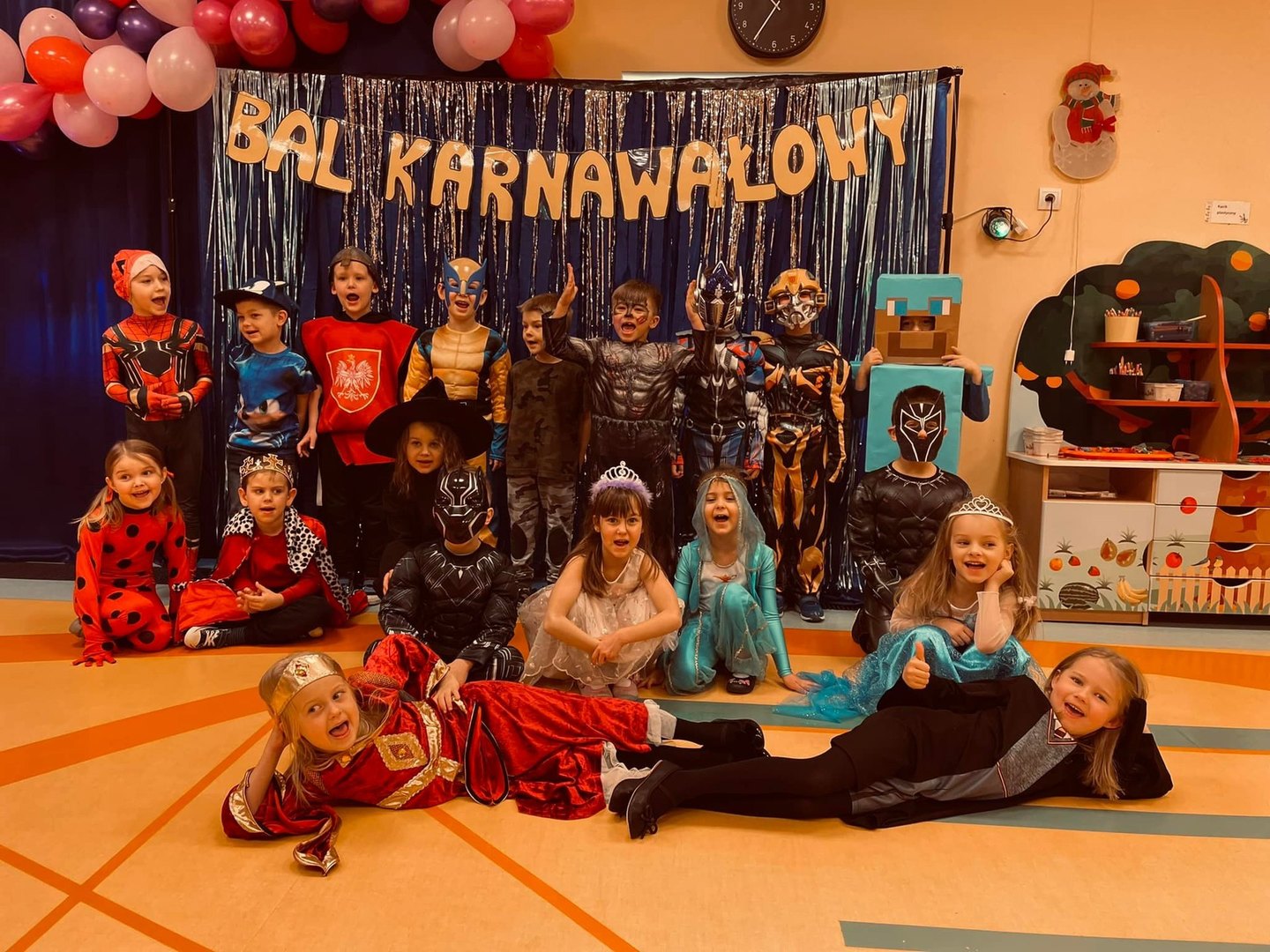 Tego dnia już od rana w przedszkolu pojawiały się kolorowe postacie. Dzieci przebrane były za bohaterów znanych bajek, w salach przedszkolnych można było spotkać wróżki, królewny, księżniczki, motylki, rycerzy, piratów, pajacyków, policjantów, Spider-Mana, Batmana… nie sposób zliczyć i wymienić tych wszystkich postaci. Tego dnia nasza sala gimnastyczna zamieniła się w wielką sale balową. Były konkursy… śpiewy oraz tańce. Bal prowadziła Pani Ania w ramach zajęć z rytmiki.